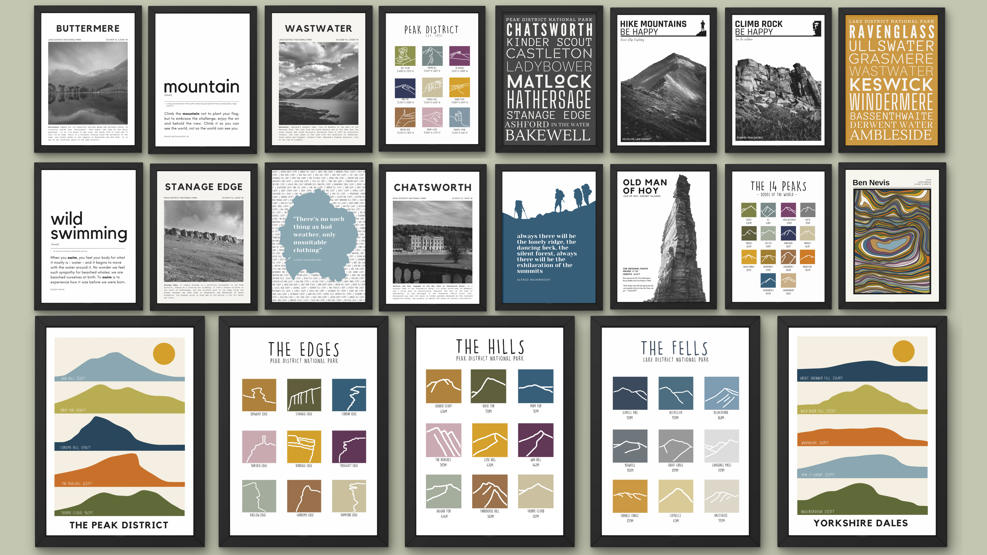 Peak District National Park Poster, Minimalist Print, Stanage Edge