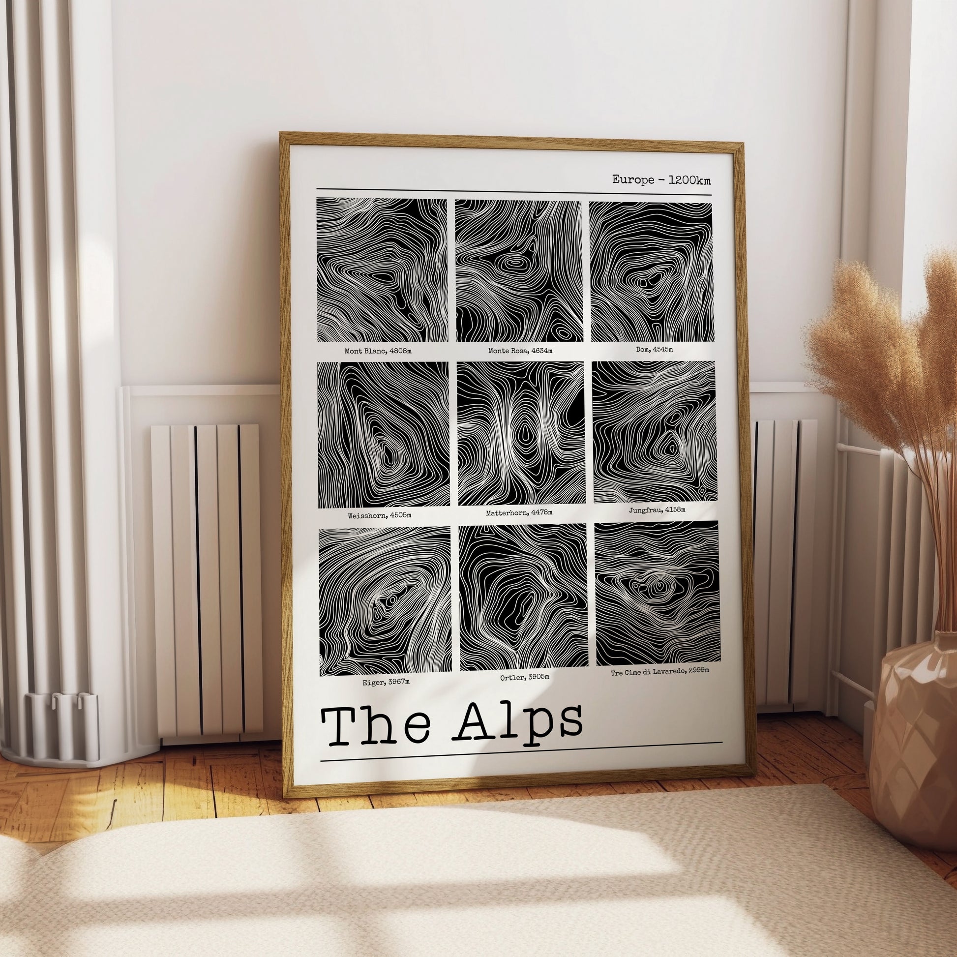 Celebrate the stunning beauty of The Alps with this hand illustrated contour print — featuring 9 hand-illustrated contour drawings of iconic Alpinist peaks. Each mountain is lovingly captured with clean, minimalist lines. The perfect print for ski lovers, mountaineers or anyone who loves this part of the world.