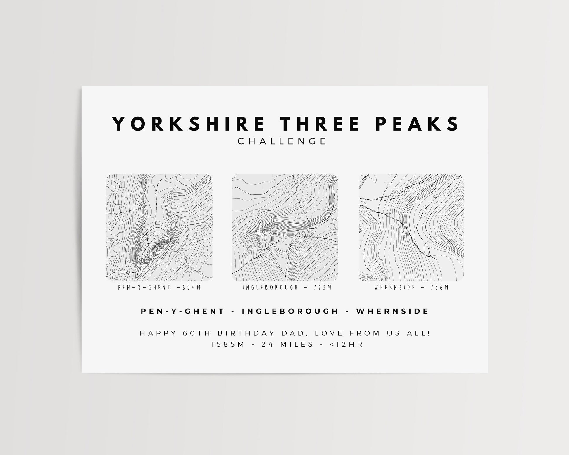 Yorkshire Three Peaks Challenge Print | Yorkshire 3 Peaks | Gift for Hiker | Minimalist Wall Art | Contour | Personalised Gift